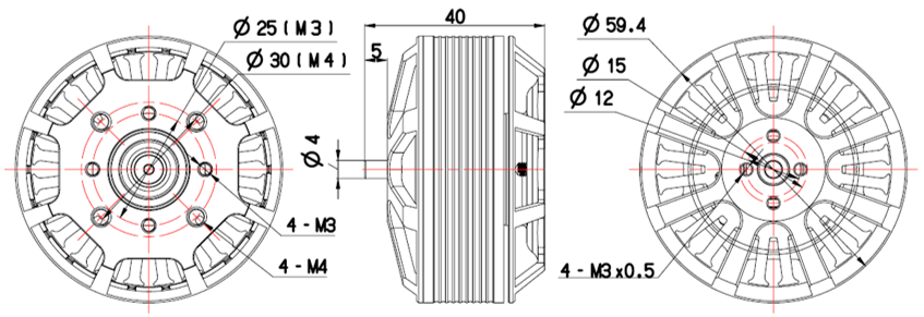 M4 (25X25mm) ; M3 (30X30mm)